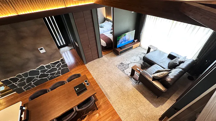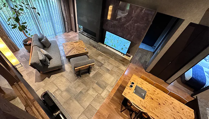 今回は全6タイプの中から、3つのお部屋タイプを取材させていただきました。まず拝見させていただいたのは、“高原の空に浮かぶ雲。その中でも浅間山にかかる美しい夕暮れ雲”をテーマにした、約132平米ある「CLOUD(クラウド)<雲>」のお部屋。