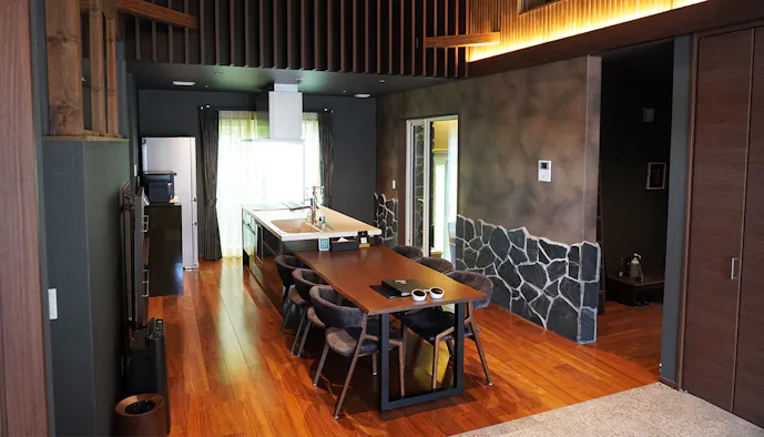 全室100平米以上、アウトドアリビングではBBQも楽しめる一棟貸し