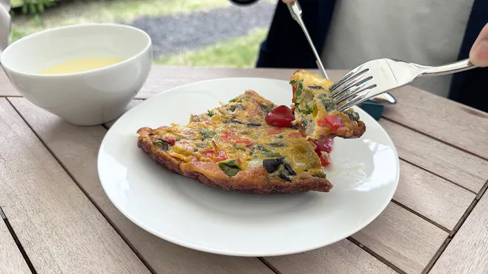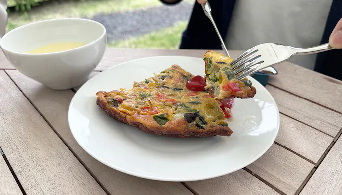 彩り豊かなフリッタータは、大きさもボリューミーで野菜たっぷり。食べ応えもあって、優しい味わいです。そのままでも美味しかったですが、電子レンジで少し温めて食べるとより美味しくいただけるそう。