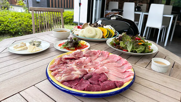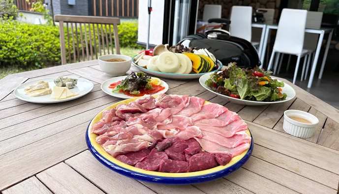 全てのお部屋には、BBQを堪能できるアウトドアリビングを完備。BBQの機材は揃っているので、BBQ初心者でもお手軽にグランピング気分で楽しめます。