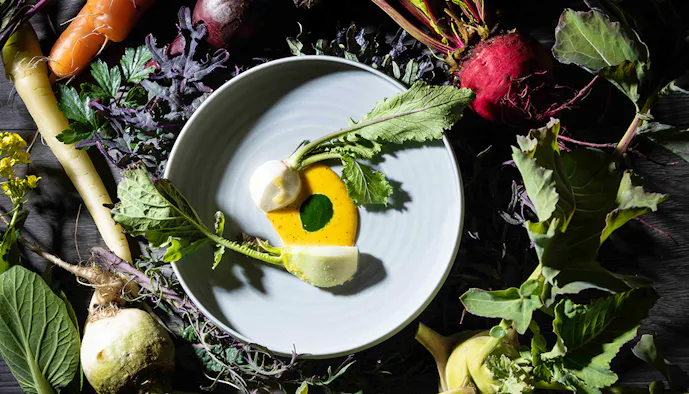 食事にもぜひ注目を。土作りから始め、手間隙かけて育てられた野菜をメインに据えた「FARM-DRIVEN」を実践したレストランでは、新しい味に出逢えます。