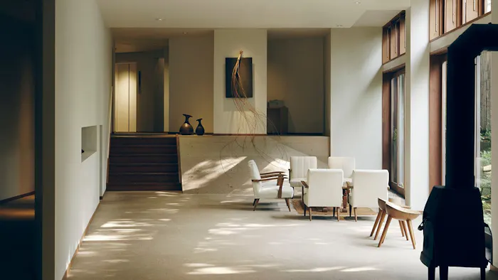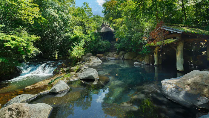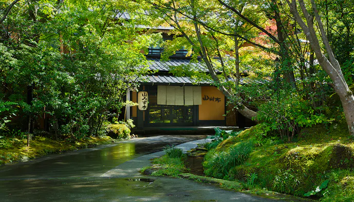 熊本県・黒川温泉にある「黒川温泉 山あいの宿 山みず木」は、日常の喧噪から離れた美しい風景の中にひっそりと佇みます。