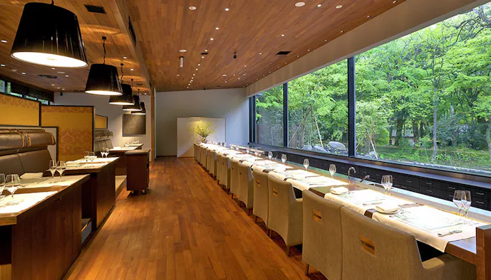 ・レストランでは一面ガラス張りの窓の外に木々の景色を眺めることができます。一品一品が驚きに満ちた料理の数々で、とても楽しい食事のひとときでした。