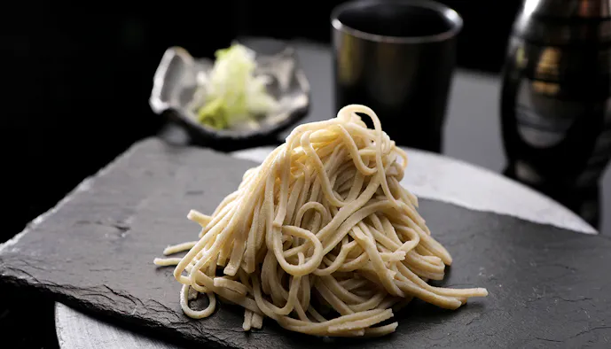 一番の自慢は、中央アルプスの伏流水と地元・飯島町田切産のソバを使った珍しい「蕎麦フレンチ会席」。カンパーニュやリゾット、デザートにもソバが使われ、その多様性に驚かされること、請け合い。フランス料理との相性も抜群で、それもそのはず、料理長はもともとフレンチのシェフなのだとか。〆でいただく十割蕎麦は、つるりとした喉越しといい、コシの強さといい、申し分のない美味しさ。夫婦の笑顔を誘います。