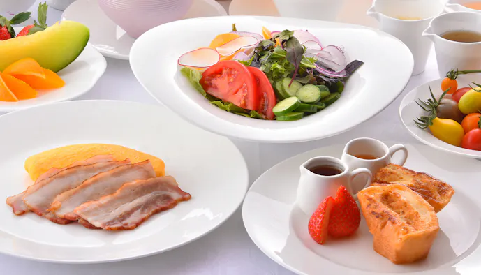 夕食は地元の旬にこだわった本格フレンチで、朝食はアメリカンブレックファースト。特に、朝食のフレンチトーストは「本当に美味しい」と話すゲストがいる程で、質・量ともに十二分と好評です。