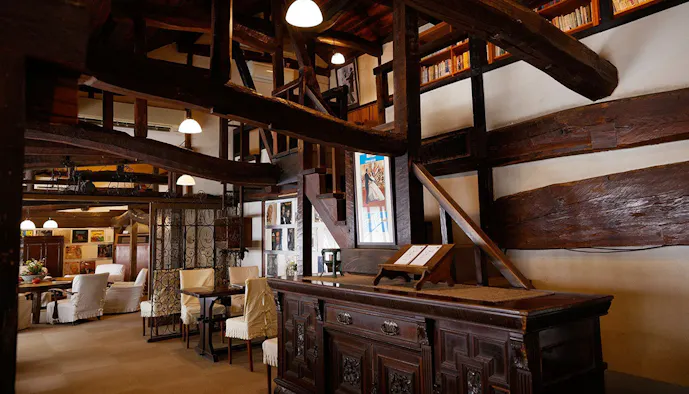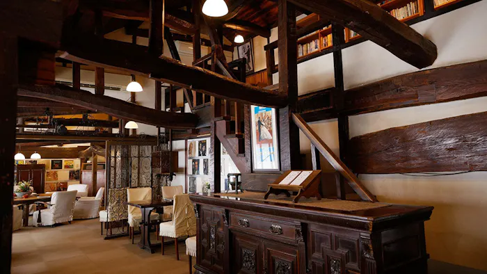 夜にはバーに早変わりする「茶房 天井棧敷」など、センスの良い施設もこの宿の特徴の一つ。大正10年(1921年)の創業以来、上質なもてなしを提供し続けています。