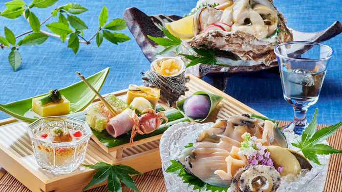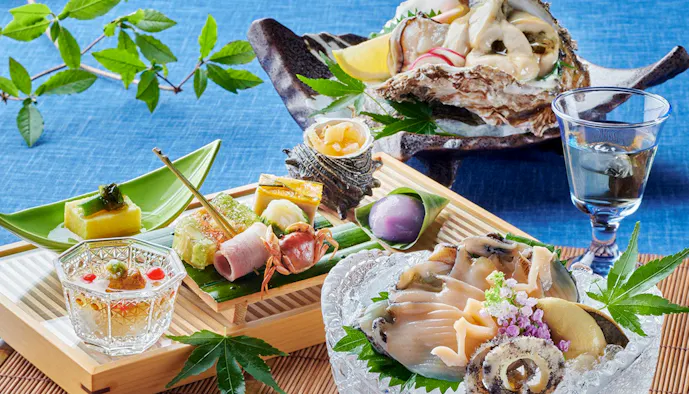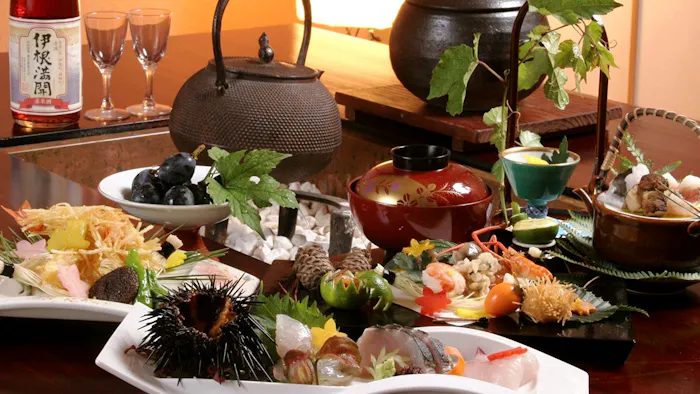 福井県は越前ガニや若狭ガレイ、若狭牛など、美味の宝庫。季替わりの会席料理を味わって。