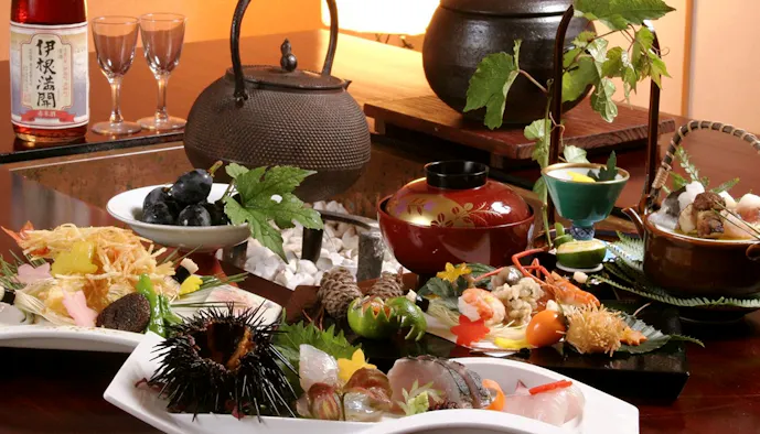 さらに嬉しいのが、客室内に専用ダイニングを備えていること。だから伊勢海老やアワビ、松阪牛など、三重ブランドの食材を盛り込んだ和洋会席を、誰の目も気にせず、ゆっくり味わうことができます。