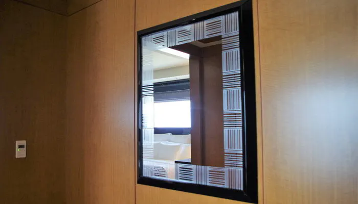 バスルームに入る目の前に鏡があり、お出かけの際、その場で身だしなみチェックが可能。ホテルのバスルームなどの明るい場所にある鏡でお化粧をすると、普段のメイクより濃くなってしまうこともあり、自然な灯りの下で再確認できるのはありがたいです。