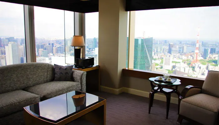 全客室が南東に位置した角部屋。2方向に大きな窓があり、東京タワーを始め、その後ろに広がる東京湾やお台場、東京スカイツリー、皇居周辺という東京屈指の眺望を堪能できます。