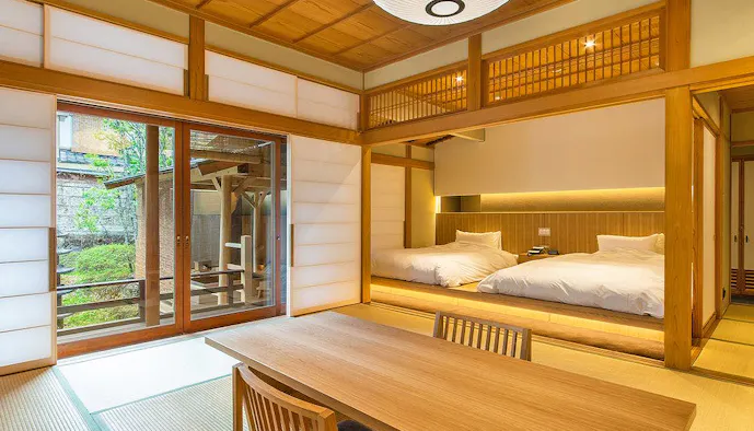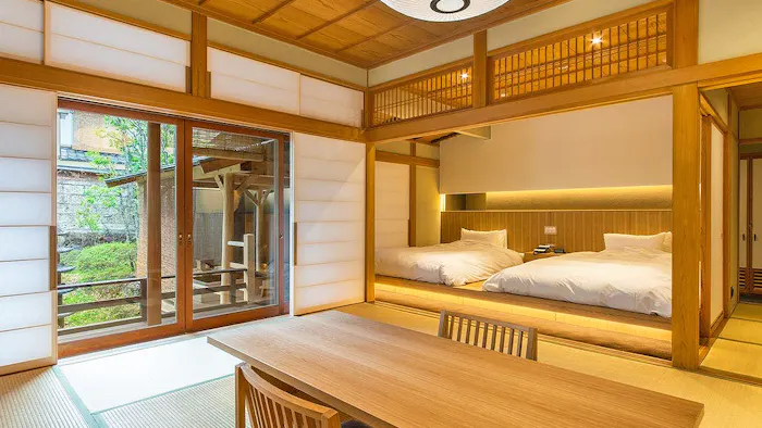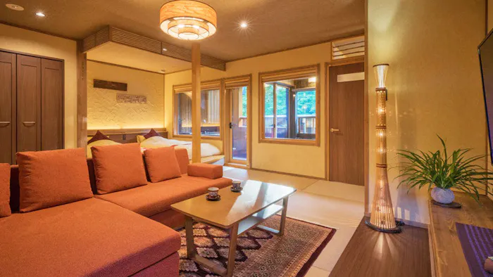 かつて宮沢賢治が、自らの故郷である岩手県の景色をモチーフに、心象世界の理想郷として思い描いた「イーハトーブ」。そんな美しい自然に囲まれる「安比八幡平の食の宿 四季館彩冬」は、八幡平の高原に佇む温泉宿です。すべて異なる間取り・設えで造られた客室は、6タイプ全17室。一部のお部屋を除き、レイトチェックアウトができるプランも用意されています。