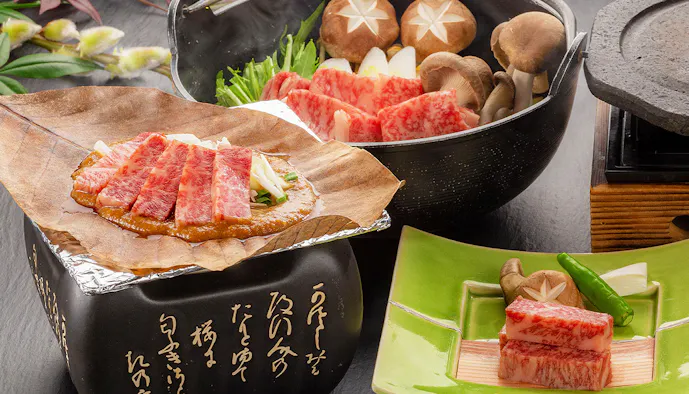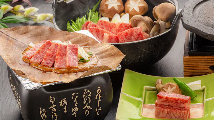 4.美しい高原の自然に囲まれた温泉宿で、豪華メイン料理を堪能する美食旅