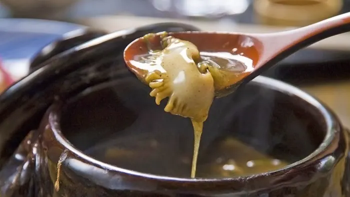 夕食は個室風のお食事処となりますが、プランによってはお部屋食への変更もできるため、旅のスタイルに合わせて選んでみて。伊豆で獲れる金目鯛などの魚介類や、上質な肉を用いた「うち山流懐石料理」がゲストの舌を唸らせます。リピーターが絶賛する朝食には、宿の名物「鮑のあんかけ」が登場。土鍋炊きのご飯とあんかけの組み合わせは、思わずおかわりをしたくなるような味わいです。