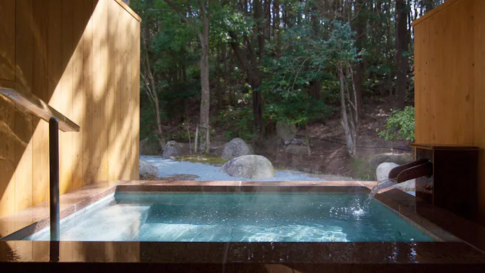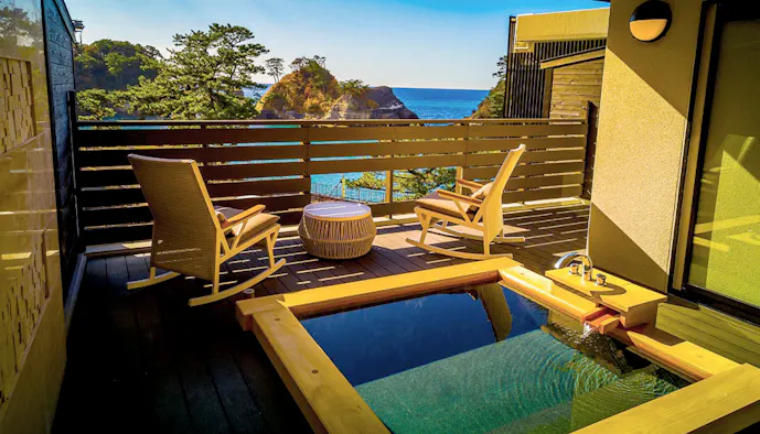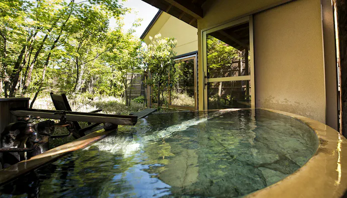 加えて今回は、お部屋食の宿をご紹介。露天風呂も付いているから、お部屋から一歩も出ないおこもりの滞在を楽しみましょう。