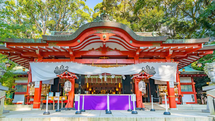“幹を1周まわると寿命が1年延びる”という樹齢2100年超の大楠で有名な「來宮神社」。本殿は来福、縁起の神様。恋愛成就や禁酒祈祷のご利益を求めて参拝者が後を絶ちません。