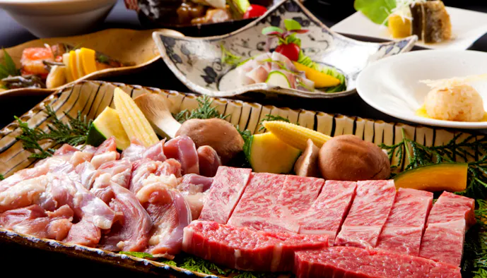 食事は、京懐石をベースにした月替りの創作料理。伊勢海老など、魚介類がメインですが、プランによっては知多牛と飛騨牛の食べ比べもOK。自家菜園で採れた無農薬野菜が彩りを添えています。