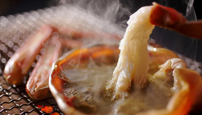 刺しはとろけ、焼きは甘く、味噌は濃厚。あまりの美味しさにノックアウトされる人が大勢いる、間人ガニ(ズワイガニのオス)。毎年11月の解禁日から3月までの京丹後を代表する冬の味覚ですが「間人温泉 炭平」は、その間人ガニのお膝元、間人漁港のすぐ近くに位置しています。