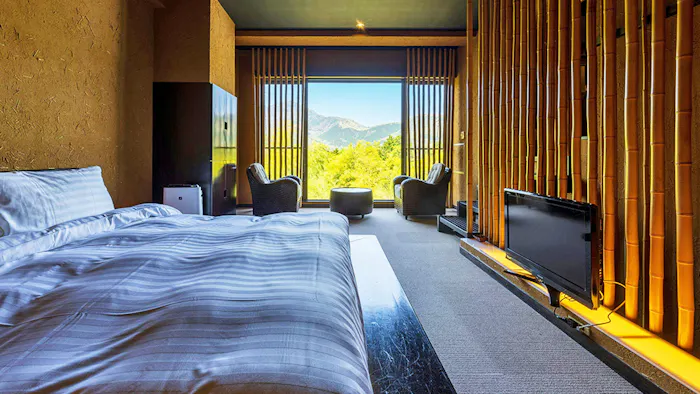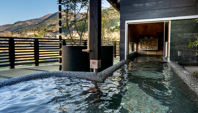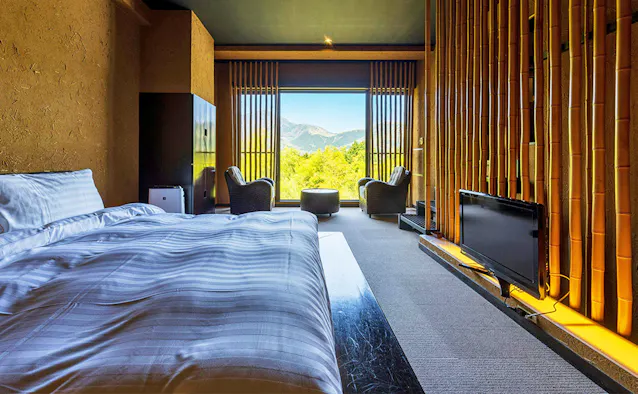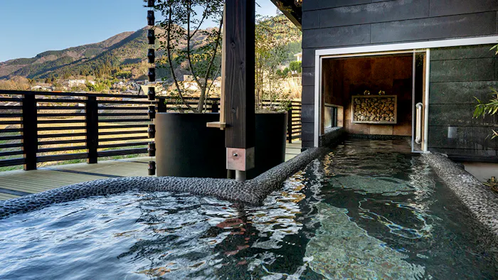 箱根・仙石原に位置する「金乃竹 仙石原」は、美しい自然に抱かれた全9室の温泉宿。すべての客室に専用の温泉露天風呂を備えています。昔話の「竹取物語」をコンセプトにしており、至るところに竹のモチーフが配されているのもこの宿ならでは。絶景客室の「空(SORA) 温泉露天風呂付」をはじめ、お部屋ごとに様々な趣で周囲の自然を満喫することができます。