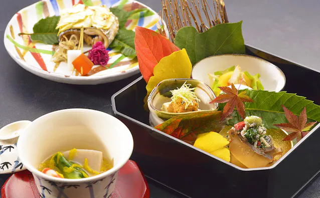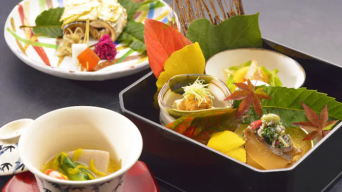 夕食に登場するのは、京都の料亭で研鑽を積んだ料理長が振る舞う本格京懐石。目でも舌でも楽しめる彩り豊かな逸品を、ゆっくりといただきましょう。夕朝食ともにお部屋食のため、周りに気兼ねなく美味しい料理を堪能できるのも魅力です。
