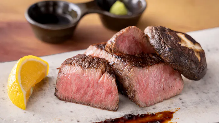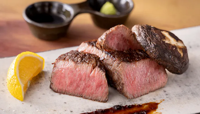 由布院の田園風景に溶け込むように立つ3室のみのヴィラですが、食事もなかなか。夕食で味わえるA5ランクの豊後牛の炭火焼きは、香ばしくてジューシー。シャトーブリアンだけを用いているそうで、こんな贅沢、旅先なら自分に許してもいいのでは。