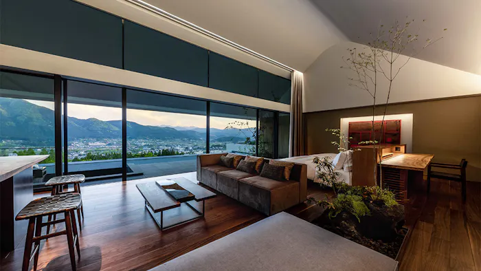 多くの個性的な宿が点在する人気の温泉地、大分県の由布院。2023年6月、これまでにはない、斬新なコンセプトを持つホテル「ENOWA YUFUIN」が開業しました。ホテルのコンセプトは“ボタニカル・リトリート”。約4万4,000平米の敷地内には客室のほか、レストランや森の中のサウナ、ファームにガーデンといった、植物や野菜などに関連する施設が数多く設けられていて、瑞々しい感性を取り戻せるような造りとなっています。