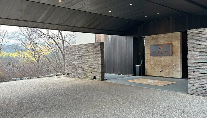 「KANAYA RESORT HAKONE」は、そんな彼のスピリットをおもてなしとして享受できるリゾートホテル。強羅駅のほど近く、箱根の豊かな自然に囲まれたプライベート空間です。取材当日、箱根の山々を見渡しながらエントランスへ向かいました。