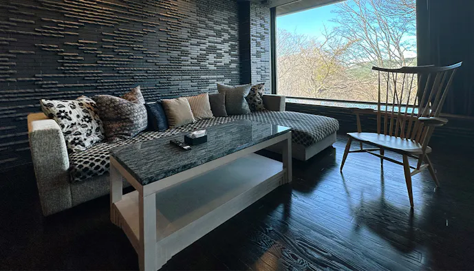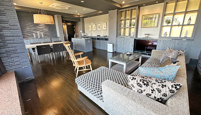 落ち着きのある照明とモダンな家具に彩られた大人の空間。
