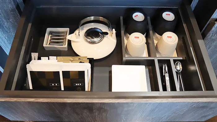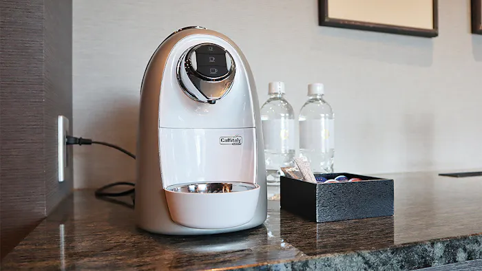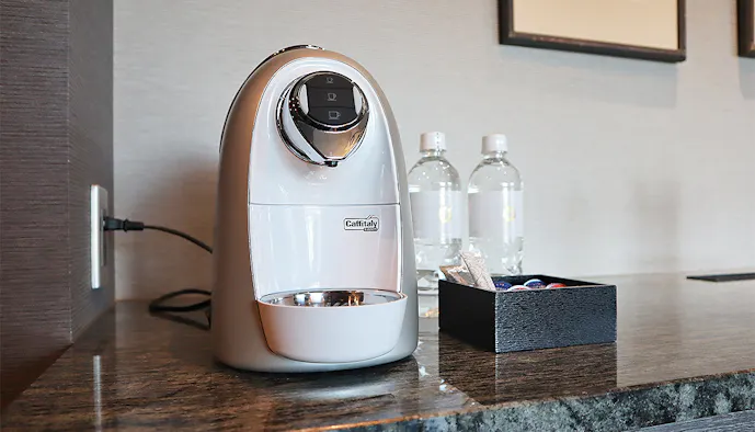 続いて、客室内のアメニティをチェック。コーヒーメーカーはイタリアの「Caffitaly System(カフィタリー・システム)」のもの。