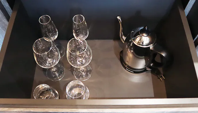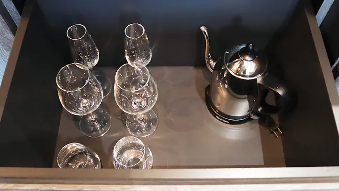 引き出しの中にはグラス類がずらり。