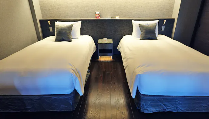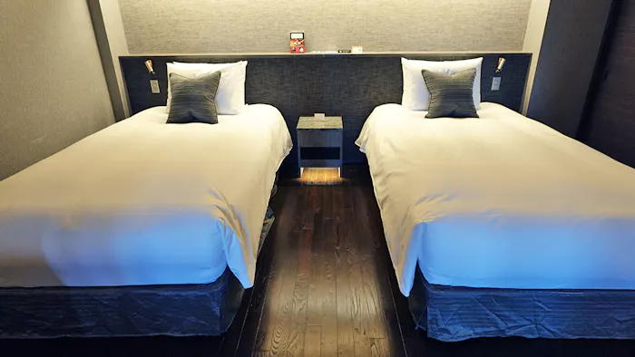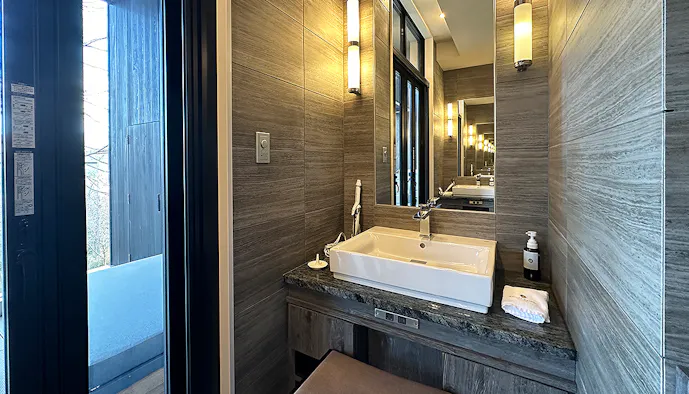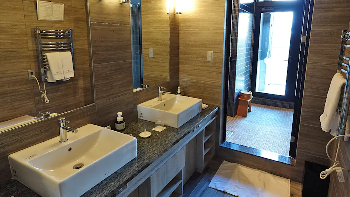 こちらの客室は、洗面台が2つ並ぶかたちで配されていました。