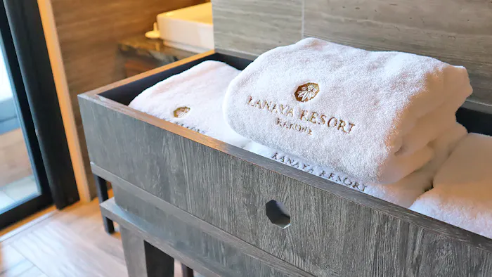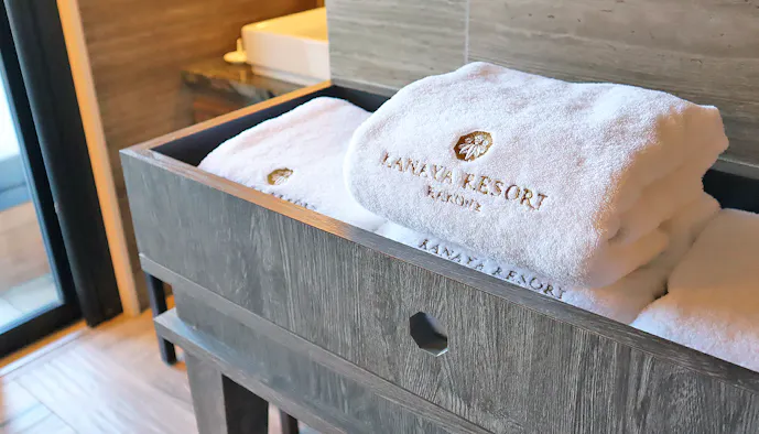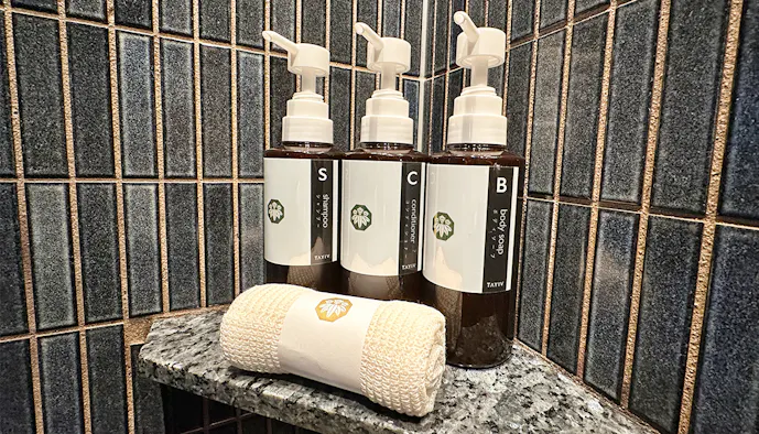 ドライヤーやカールアイロンなどは、すべて人気ブランド「ReFa(リファ)」で統一。プロも使用するアイテムを、滞在中に試せるのは嬉しいですね。スキンケアは「雪肌精」でした。そしてホテルのロゴが入った、ふかふかのタオルも。