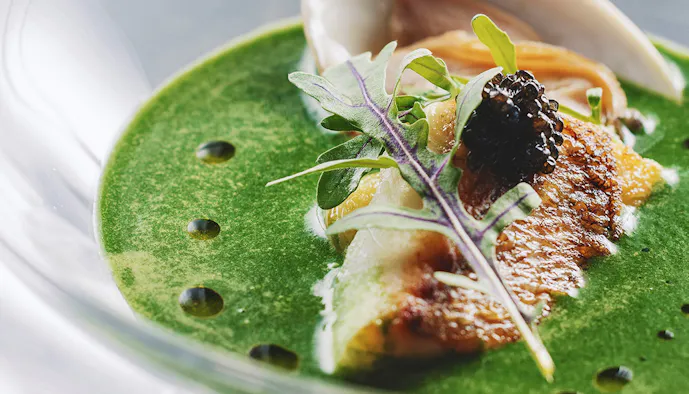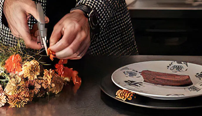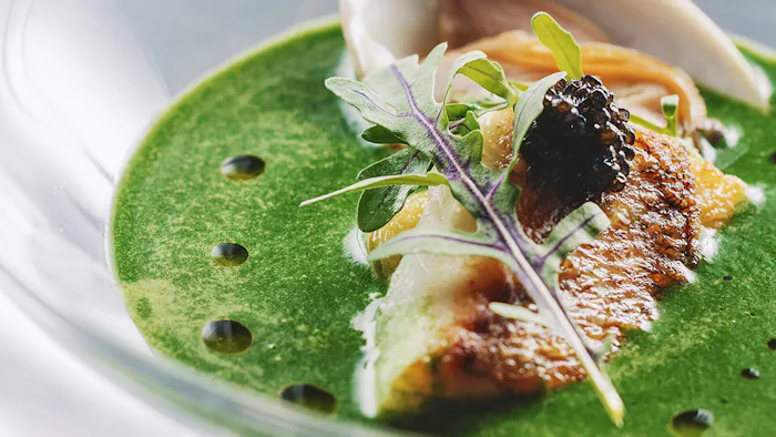 レストランで振舞われるのは、四季折々の旬の食材を活かした金谷流の創作フランス料理。箸でいただけるメニューには和のエッセンスが落とし込まれており、至るところに粋な演出が隠されているのだそう。