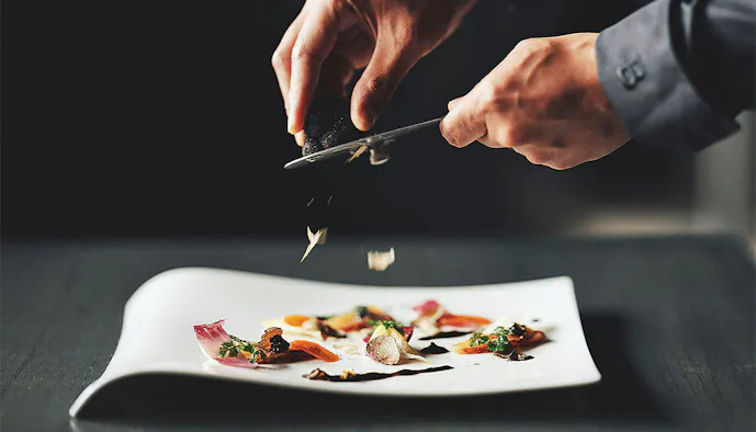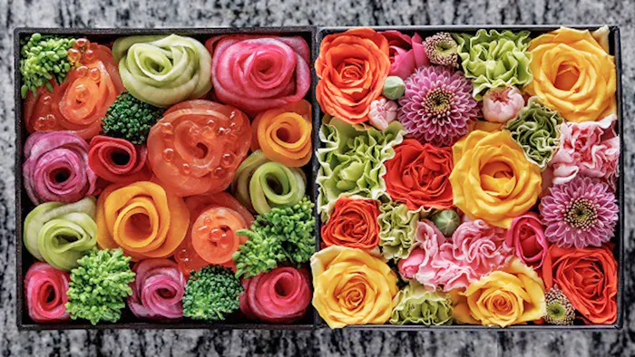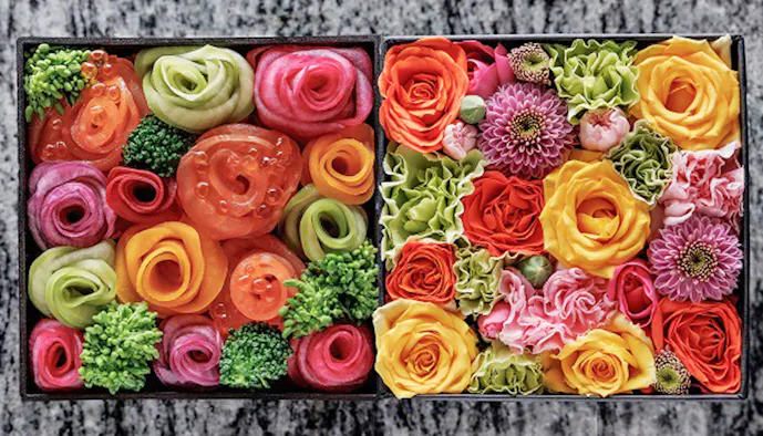 夕食は、料理長の増井睦 (ますい あつし)氏が、ニコライ・バーグマン氏の作り出したフラワーボックスからアイデアを膨らませたフランス料理。「KANAYA RESORT HAKONE」ならではの和敬洋讃(和を敬い、洋を讃える)をベースに、フラワーデザインを盛り込んだ見た目にも美しい料理は必見です。