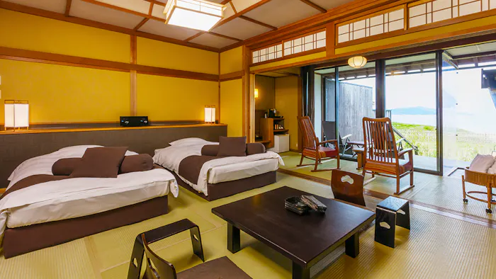 リニューアルした客室:【オーシャンフロント】温泉露天付和室-ツイン-【禁煙】