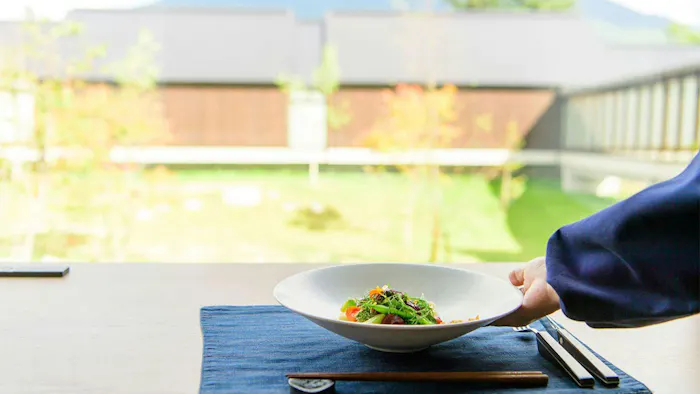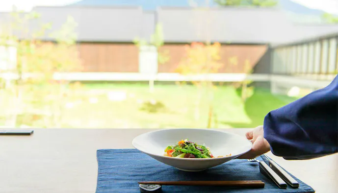 縄文時代から続く人々の痕跡が残る町、ニセコ。「ニセコ羊蹄の宿 楽 水山」では「蝦夷富士」とも呼ばれる北海道の名山、羊蹄山を望む湯浴みが叶います。18室のお部屋は離れ形式で、全室に露天風呂付。また、夕食には生産者から直接仕入れた地域の食材で織りなす旬の創作フレンチが供され、彩り豊かな一皿ひとさらに胸が高鳴ります。
