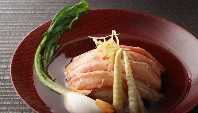ニシン漁や交易で栄えた町並みから、北海道で初の日本遺産に認定された江差町。民謡の「江差追分」でも有名なこの町で、海の近くに佇む「旅庭 群来」は、モダンな建築が印象的な温泉宿。直営の農場を持ち、新鮮で上質な食材を豊富に使用した創作懐石料理を楽しむことができます。夕食時のドリンクとルームサービスが宿泊料金に含まれるオールインクルーシブなのも嬉しいポイント。