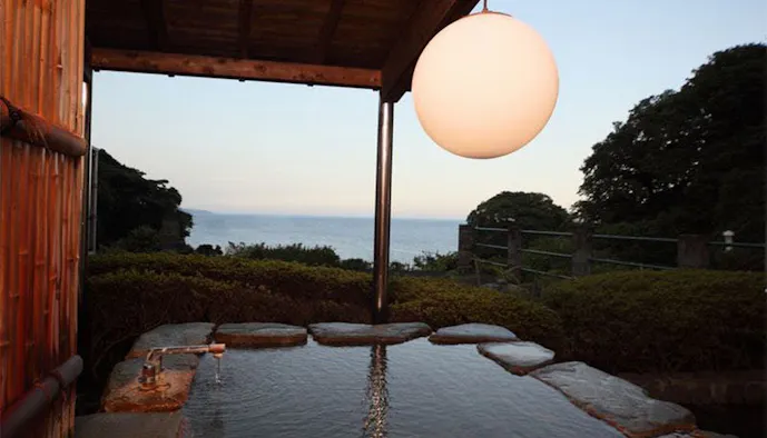 5.鉄分を含んだ“あめ色”の自家源泉が、相模湾を望む露天風呂を満たす