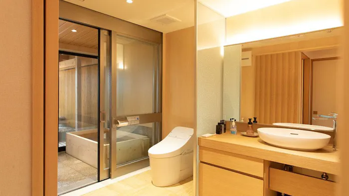 溝辺鹿児島空港ICより車で約30分、JR霧島神宮駅からは車で約20分。春には、日本植物学の父・牧野富太郎博士が発見したミヤマキリシマが咲く、霧島連山の麓に佇む「きりしま悠久の宿 一心」。水盤を取り囲むように造られた離れの客室全てに“まろやかなにごり湯”と評される、炭酸水素塩温泉の自家源泉を掛け流しで楽しめる御影石造りの内湯と檜造り露天風呂が備わります。