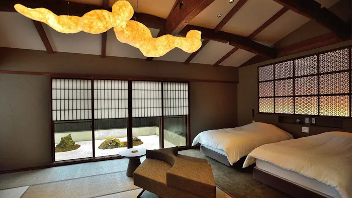 「特別和室『こうばい』」は、純和風の凛とした空間が素敵な客室。掘りごたつのある客間でぬくぬくと温まりながら端正な中庭を眺めたり、寝室用に設えられた箱庭の枯山水が心に心を潤される時間も贅沢。鹿児島近海で獲れた旬の魚介や、契約牧場の鹿児島黒毛和牛など、当地に足を運んだからこその美食もたっぷりと味わいたいものですね。