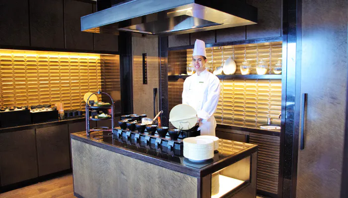 有難いのは、予め小皿や小鉢に取り分けられているメニューが多いこと。ですから、ビュッフェ台は常に清潔感がありますし、自分でお料理を取る際も、盛りすぎることがないので、お皿の上も美しいまま。