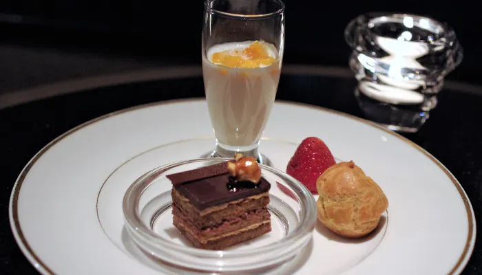 イブニングオードブルが終わると、スイーツ&コーディアルの時間になります。各プレゼンテーションの時間帯が終了する10分くらい前にスタッフの方がお声がけしてくださるので、最後までゆったり楽しめました。