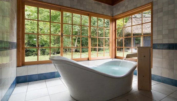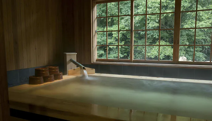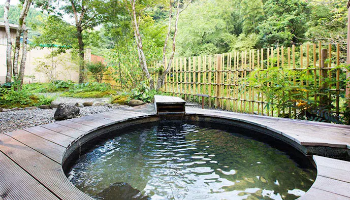 さまざまな泉質の湯が湧く黒川温泉ですが、この宿の湯は単純硫黄泉で掛け流し。大浴場「村中の湯たゆたゆ」は、木造の内湯も木々に囲まれる露天風呂も風情があって、特に露天風呂から見る満天の星には感激するでしょう。宿の周囲にはウォーキングコースもあり!健脚自慢の方は、ぜひチャレンジを。
